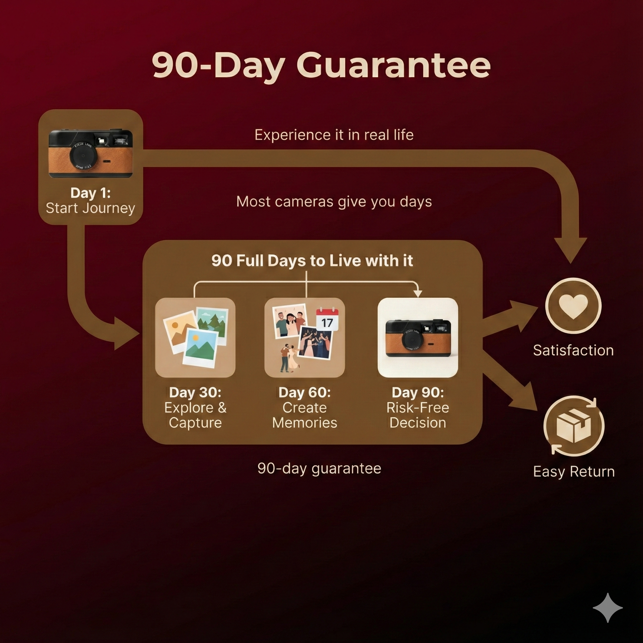 Most cameras give you days.This gives you 90 full days to live with it.