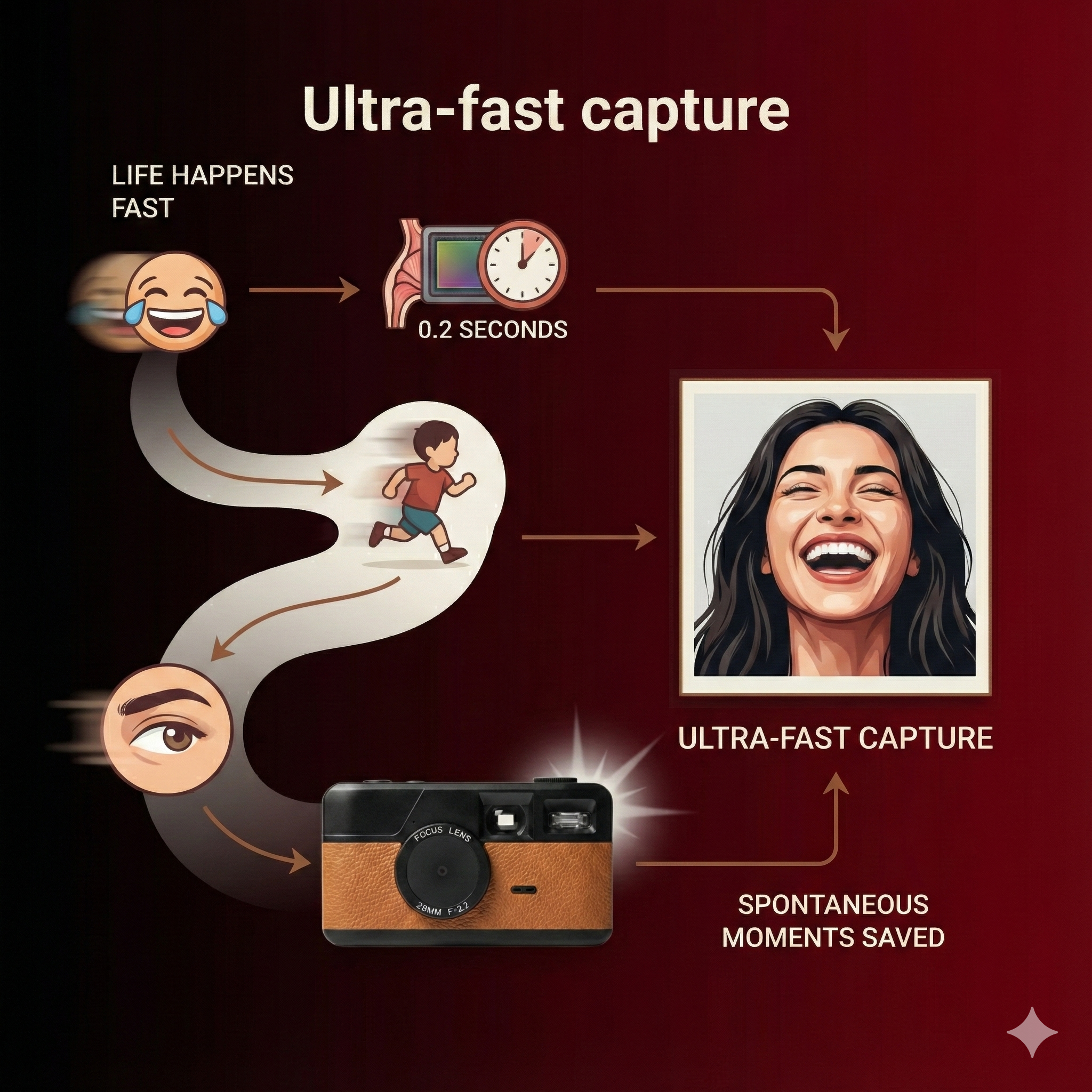Life happens fast — laughs, looks, fleeting expressions.This camera captures in under 0.2 seconds.